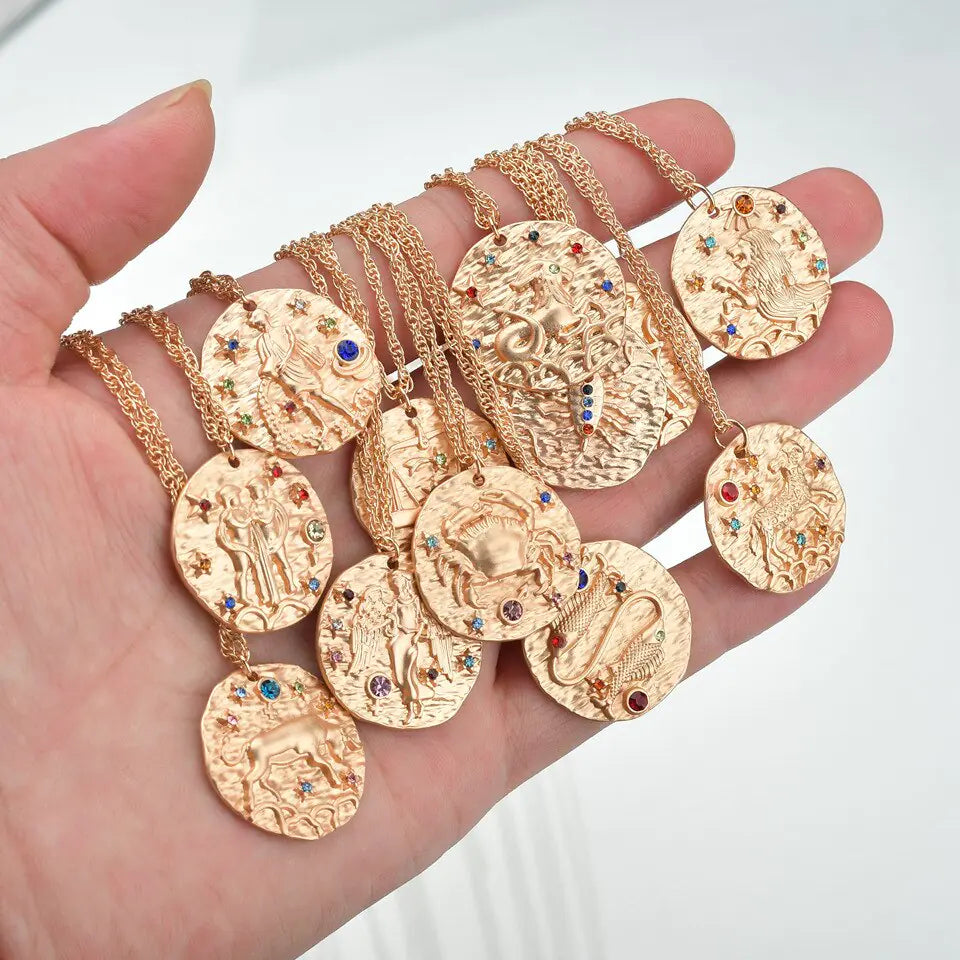 Crafted from high-quality alloy, these necklaces not only showcase your zodiac sign but also add a touch of celestial charm to any outfit. With a chain perimeter tailored to your preference, you can wear your sign with pride and style.